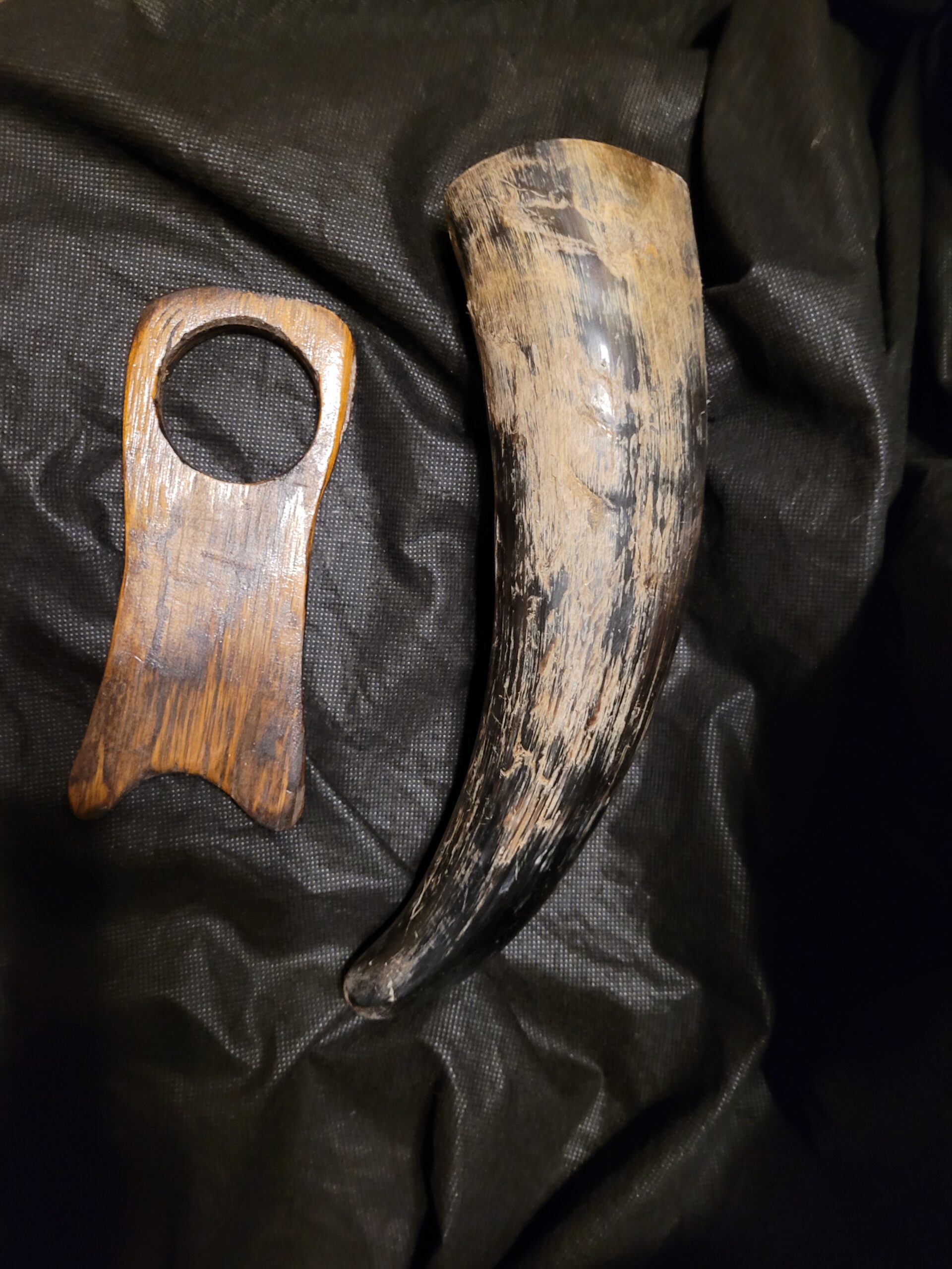 Viking Horn with Custom Rough-Carved Oak Base